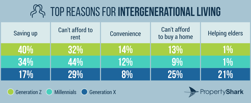 To better understand the difference in attitude between Generation Z, Millennials and Generation X towards homeownership, intergenerational living and saving for a down payment, PropertyShark conducted a generational survey on their preferences.
